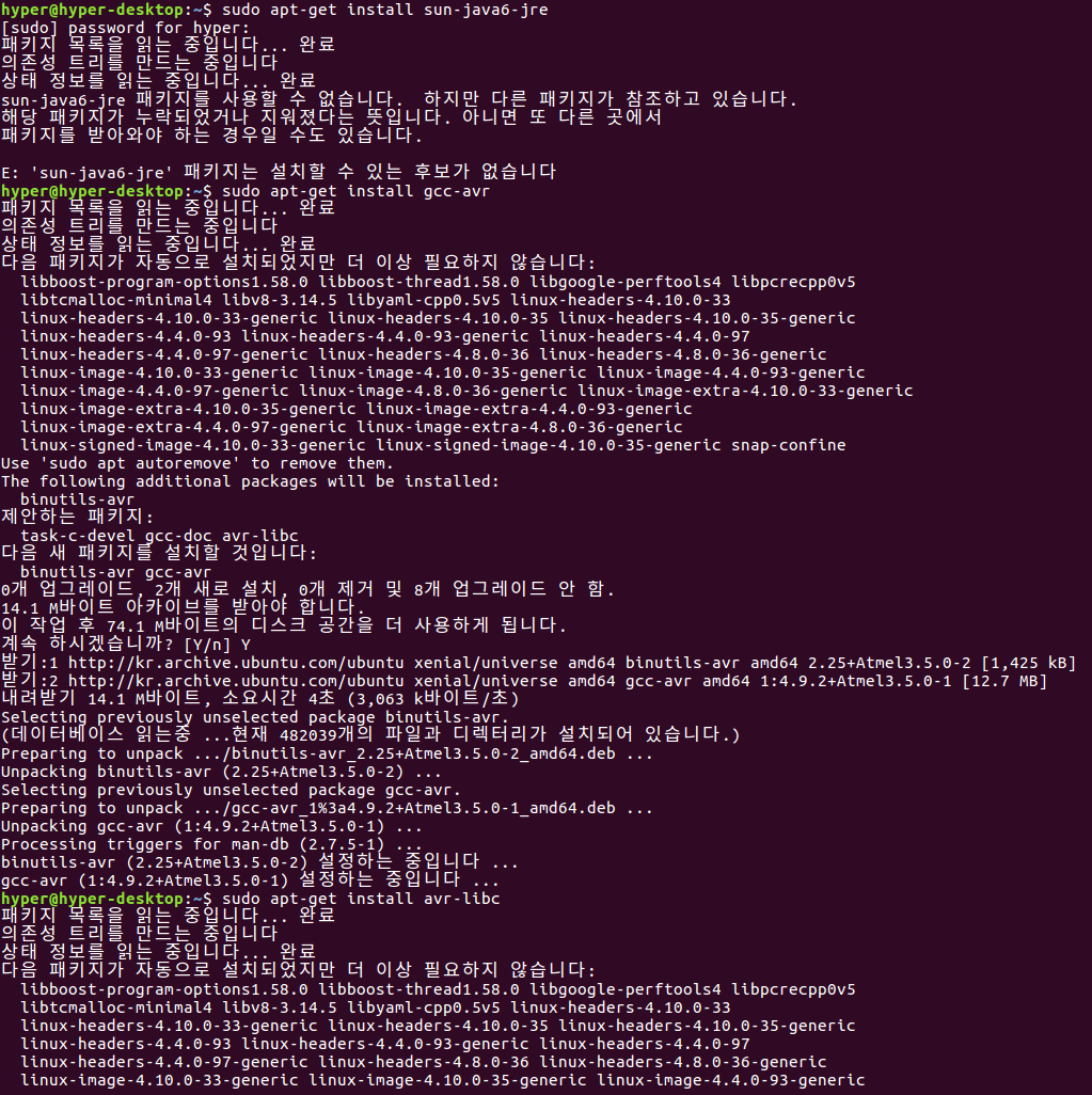시냅틱을 사용하여 "gcc-avr"패키지를 찾아서 설치해야합니다. 터미널을 사용하여 다음과 같은 방법으로 apt-get 명령을 사용해야합니다.