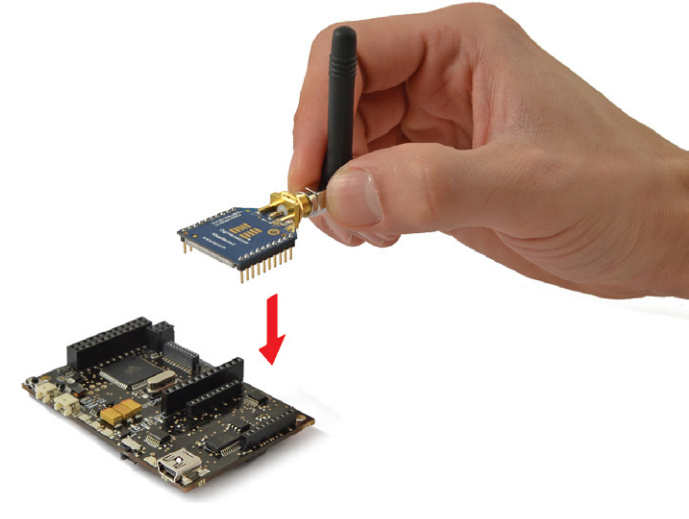 Waspmote의 해당 소켓에 사용할 모듈을 놓습니다.