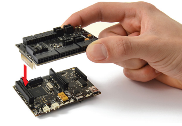 Waspmote에서 사용할 센서 보드를 놓습니다.