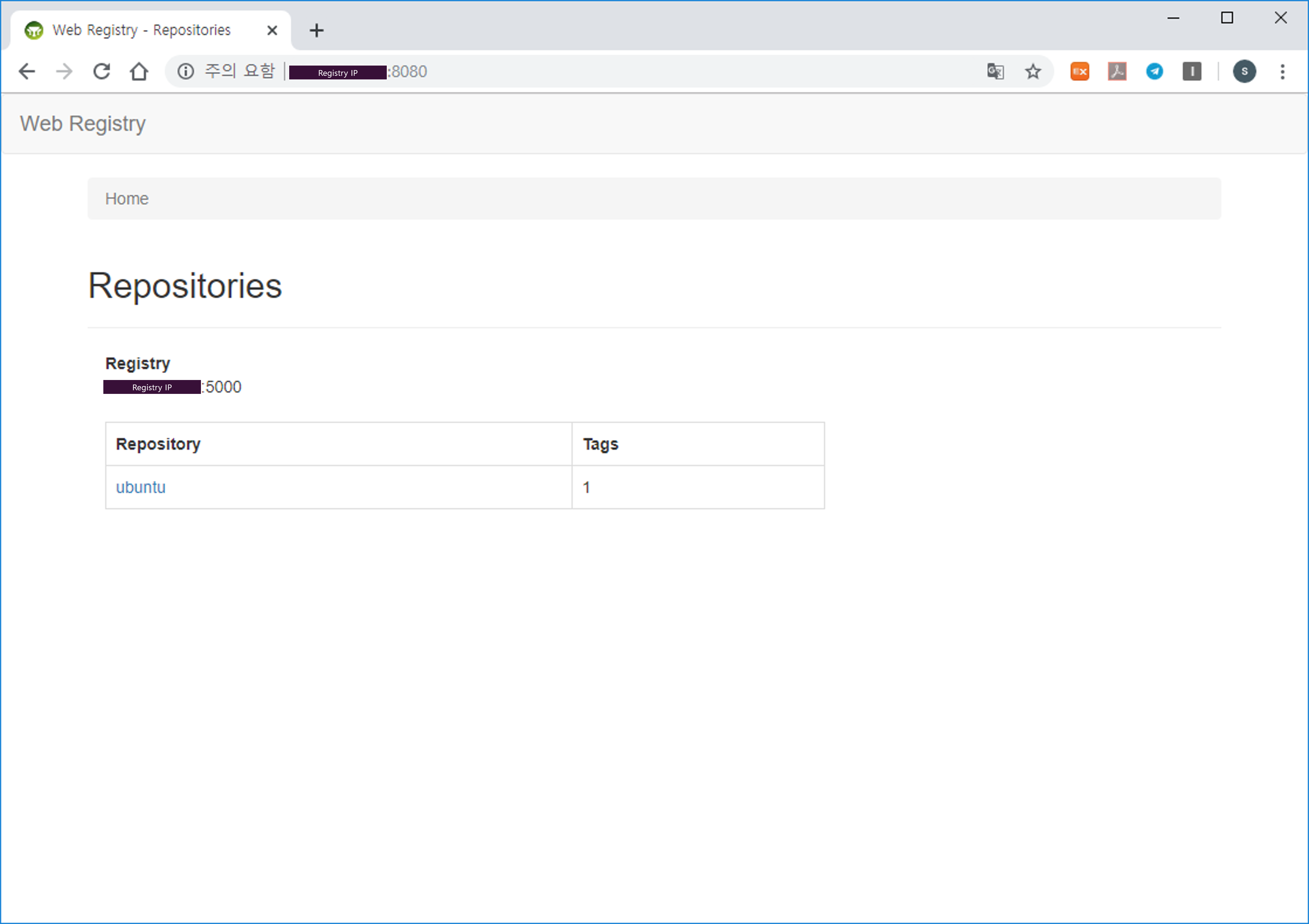 <레지스트리 설치 IP>:8080 접속